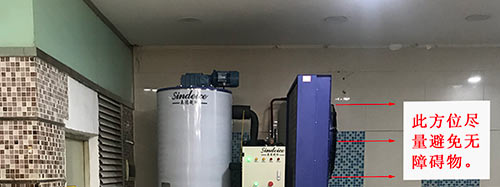 2、制冰機(jī)周圍無(wú)雜物堆放,制冰機(jī)散熱風(fēng)扇與墻面至少保持1米的距離,如條件允許散熱風(fēng)扇的方向保證無(wú)障礙物。